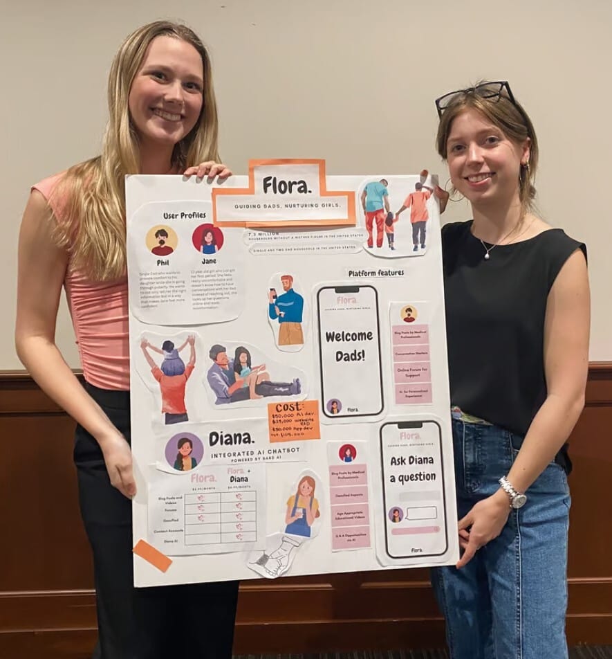 But first, a quick jump back in time to April 2024: the month of Flora’s conception! Flora was sprung into life during a 90-minute hackathon at The University of St. Thomas, where founders Justina Palmer & Payton Maas were faced with the prompt of developing an idea to improve women’s lives. What better way to help girls than to make sure their confidence stays intact during the most foundational (and daunting) years of their lives! Thus, Flora was born.